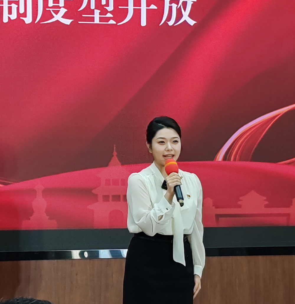 比賽分為“主題宣講”和“即興宣講”兩個環(huán)節(jié)。“主題宣講”環(huán)節(jié),12名參賽選手圍繞“筑夢現(xiàn)代化 共繪新圖景”主題進行6分鐘宣講。陳皓雅以《“河”以揚州》為題,緊緊圍繞大運河原點城市建設(shè),講述了城控集團牢記習(xí)近平總書記殷殷囑托,傳承與發(fā)展運河文脈,積極融入大運河文化帶建設(shè),致力于城市基礎(chǔ)設(shè)施更新、古城保護與活化利用、民生幸福工程建設(shè),展現(xiàn)了城控集團與城市共生息,擘畫人河相融的城市高質(zhì)量發(fā)展藍圖的時代擔(dān)當(dāng)。“即興宣講”環(huán)節(jié),陳皓雅圍繞“穩(wěn)步擴大制度型開放”關(guān)鍵詞,結(jié)合黨的二十屆三中全會精神和城控集團穩(wěn)步推進國企深化改革進行了2分鐘即興宣講。今年以來,城控集團在市委、市政府的堅強領(lǐng)導(dǎo)下,深入學(xué)習(xí)貫徹黨的二十屆三中全會精神,精心組織“我是黨課主講人”活動,持續(xù)強化黨建引領(lǐng),推動黨建工作與生產(chǎn)經(jīng)營同頻共振,以高質(zhì)量黨建護航企業(yè)高質(zhì)量發(fā)展。