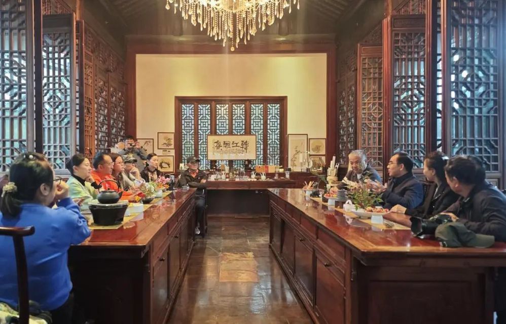 成都旅游協(xié)會成員被長樂客棧精致的園林景觀和建筑特色深深吸引,紛紛駐足拍照。在客棧內(nèi)的春川茶寮,充滿文化氣息的茶藝服務充分展現(xiàn)了揚州非遺文化的魅力,給大家留下了深刻的印象。