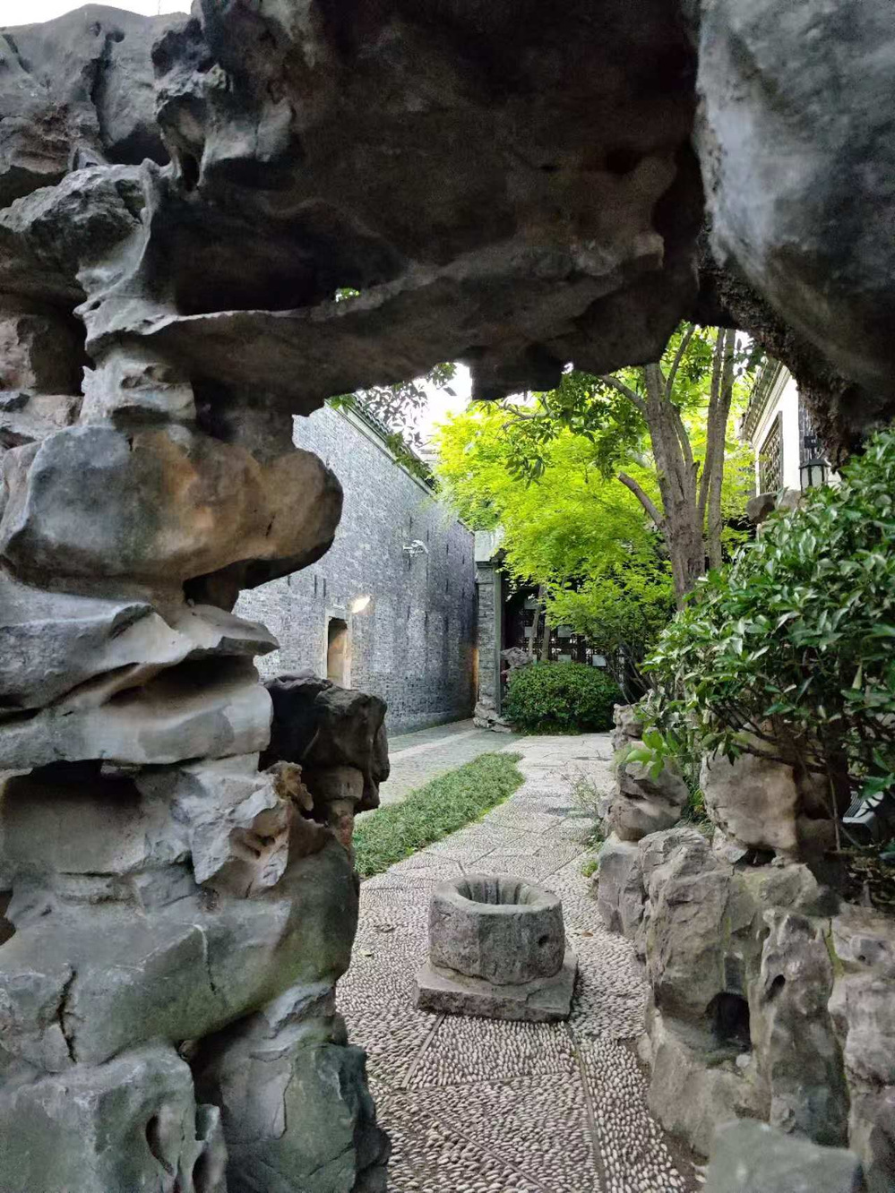 芥子納須彌,壺中有乾坤。從逸圃大門入,迎面有月門,額書“逸圃”二字,“逸”有安樂超群之意,“圃”即瓜果菜園之所,深諳園主田園意趣。月門內(nèi)有廊修直,廊西有住宅五進(jìn),廊東湖石假山貼墻而筑,委婉屈曲,山旁筑牡丹臺,花時(shí)若錦。山間北頭之盡端,倚墻筑五邊形半亭,亭下有碧潭,清澈照人。亭旁有花廳三間,外廊天花,皆施淺雕,有白玉蘭、荷花、菊花、梅花,寓意“春夏秋冬”的磚雕,有五只蝙蝠圍住一個(gè)壽字,暗指“五福同壽”的版雕,匠心獨(dú)運(yùn),巧奪天工。沿花廳后小軒碴道轉(zhuǎn)人隔園,折向西北,可見西樓三間,面峰而筑,樓有盤梯可下,或可從假山轉(zhuǎn)入,亦或從住宅第五進(jìn)回廊進(jìn)入,還可從暗門登臨,園林泰斗陳從周評價(jià)此樓布局特點(diǎn)是為“上下錯(cuò)綜,境界多變”。