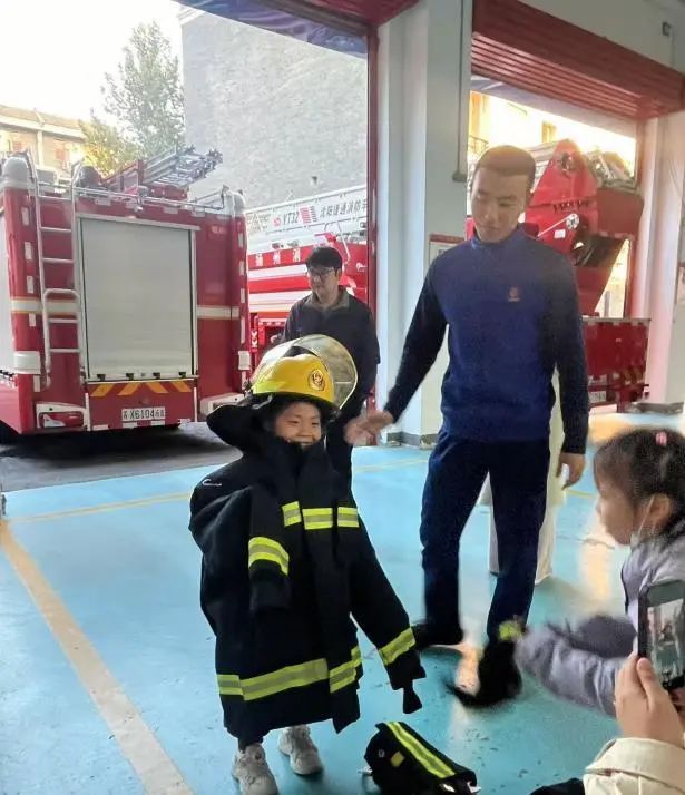 為了更具象化讓親子家庭了解各種消防器材設(shè)備,在消防隊員的帶領(lǐng)下,小朋友們親身體驗穿戴防護服、觀摩消防車等環(huán)節(jié),了解部分救援器材在滅火和救援任務(wù)中的用途,孩子們感受到消防員們的英勇與付出,興奮之情溢于言表。