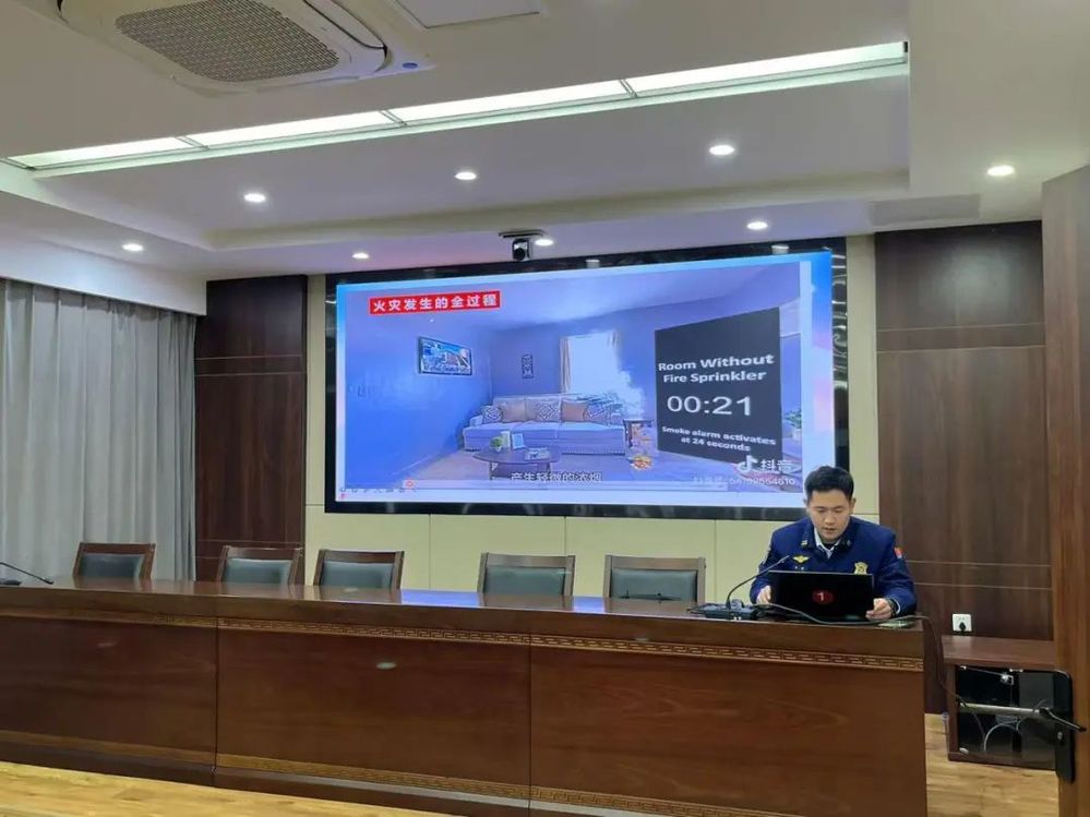 活動開始,李隊長以近幾年發(fā)生的多起消防安全事故為例,重點以家庭消防逃生及電瓶車充電為主要內(nèi)容,用視頻講解的方式直觀展示了正確逃生方式及室內(nèi)電瓶車充電的嚴重后果,提升了大家危險防范意識和避險能力。