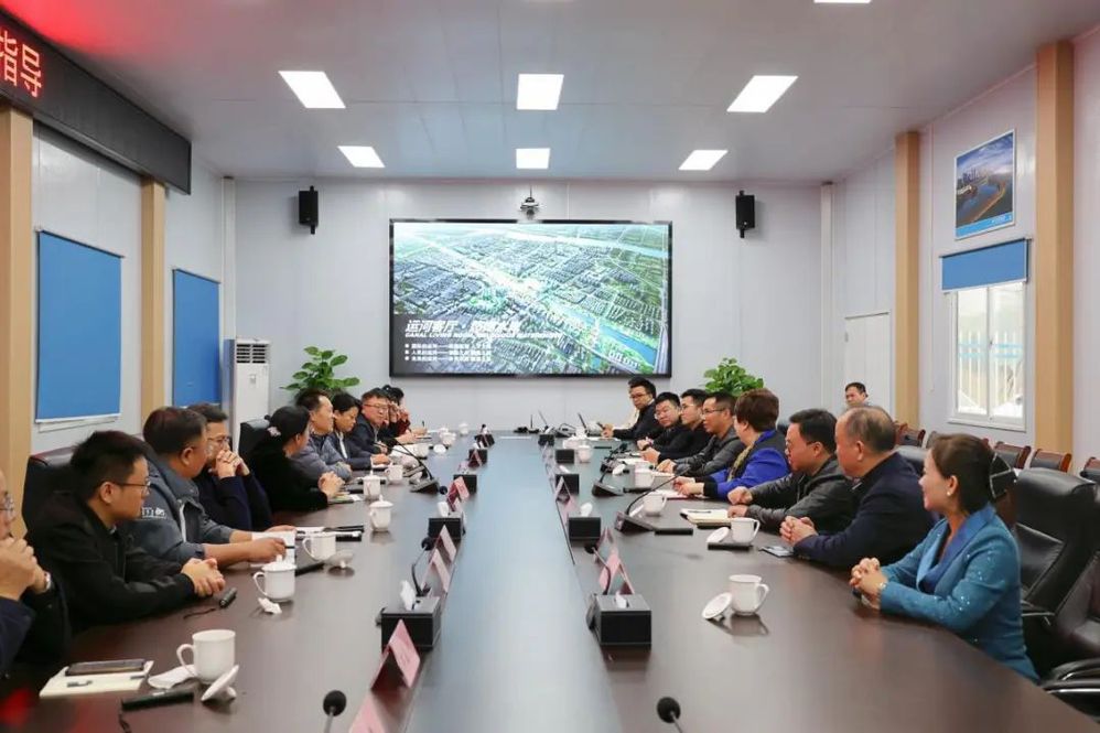 平陸運(yùn)河調(diào)研組實(shí)地考察了大運(yùn)河“十里外灘”項(xiàng)目現(xiàn)場(chǎng),了解項(xiàng)目進(jìn)展情況。座談會(huì)上,調(diào)研組聽取了大運(yùn)河“十里外灘”項(xiàng)目方案設(shè)計(jì)匯報(bào),雙方就各自在項(xiàng)目中取得的成績和面臨的困難進(jìn)行了友好交流,并重點(diǎn)對(duì)項(xiàng)目實(shí)施模式、項(xiàng)目融資、運(yùn)營策劃等方面進(jìn)行探討。