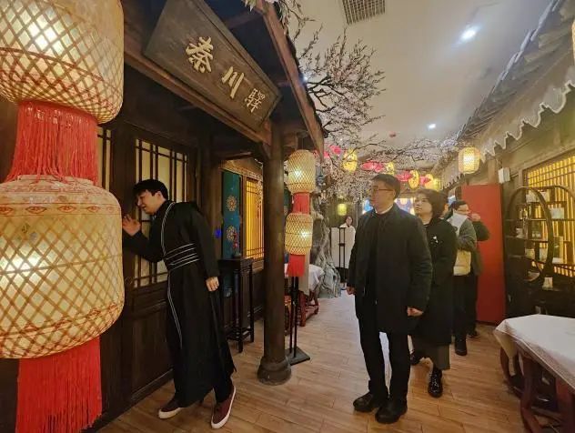 隨后,殷仕寶一行調(diào)研了“浮光”機關(guān)劇場,店內(nèi)獨特的謎題設(shè)計、精美的場景布置以及緊密圍繞地方特色打造的故事線給大家留下了深刻的印象。殷仕寶在與資產(chǎn)公司主要負責人深入交流中,了解了該項目在團隊建設(shè)、市場推廣方面的情況和面臨的挑戰(zhàn)。殷仕寶表示這種將傳統(tǒng)文化與現(xiàn)代科技相結(jié)合的沉浸式體驗模式,為文化創(chuàng)新產(chǎn)業(yè)帶來了新的思路和啟發(fā)。