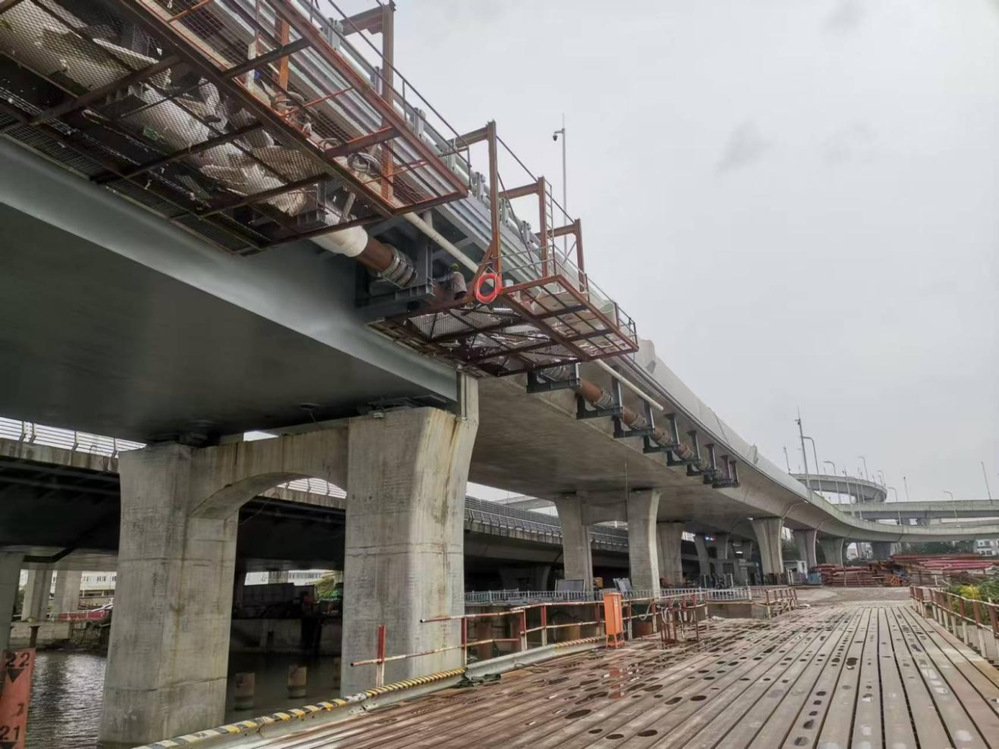 此次隨橋敷設(shè)的供熱管道是東南主干線(xiàn)(三期)一標(biāo)段供熱管道建設(shè)的重要節(jié)點(diǎn)和難點(diǎn),更是“互聯(lián)互通”的最后一環(huán)。隨橋敷設(shè)的管道采用DN600管徑,長(zhǎng)約380米。項(xiàng)目建設(shè)初期,項(xiàng)目組積極與大橋建設(shè)、施工單位對(duì)接??紤]到橋體設(shè)計(jì)情況,經(jīng)過(guò)雙方設(shè)計(jì)和技術(shù)人員充分溝通,決定采用鋼結(jié)構(gòu)支架隨橋敷設(shè),布置位置為利用預(yù)應(yīng)力混凝土連續(xù)箱梁和鋼箱梁梁側(cè)生根。為保證橋面安全,施工過(guò)程中對(duì)每一道焊縫按規(guī)范要求進(jìn)行了無(wú)損檢測(cè),熱力管道的垂直荷載及軸向荷載均滿(mǎn)足該橋設(shè)計(jì)荷載要求。