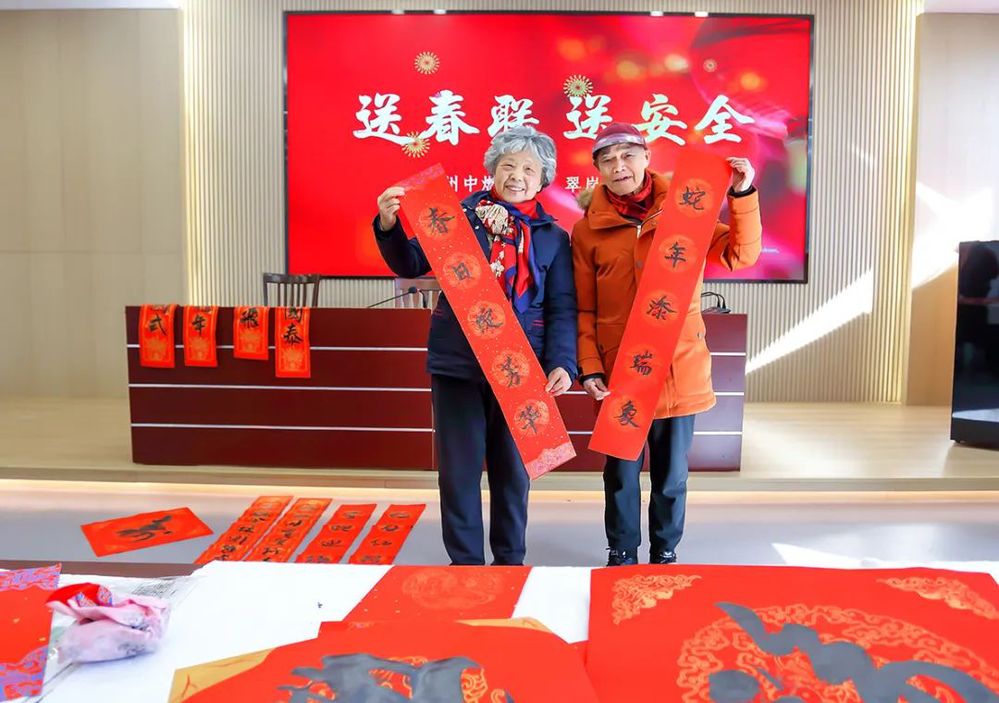 蛇年添瑞象,春日綻芳華。社區(qū)86歲的黃老先生和老伴早早來到了現(xiàn)場,即興書寫了一幅春聯(lián)。老伴湯女士說,手寫的春聯(lián)有溫度、接地氣,特別有過年的氣氛,還學(xué)到了實(shí)用的燃?xì)獍踩R(shí),感謝中燃公司送來的溫暖祝福。