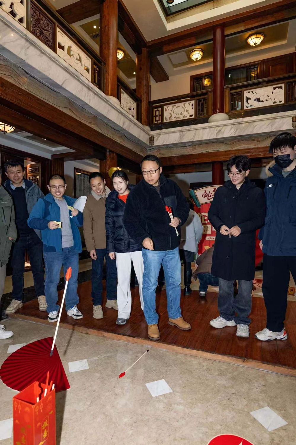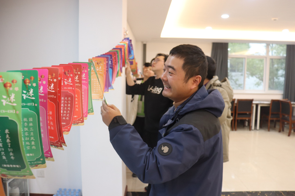 最先進(jìn)行的是猜燈謎環(huán)節(jié),大家圍攏在燈謎前,或低頭沉思,或相互交流,爭相猜解燈謎。緊接著,套圈和投壺環(huán)節(jié)更是將活動推向了高潮,笑聲、歡呼聲此起彼伏,活動現(xiàn)場洋溢著濃厚的節(jié)日氣氛。