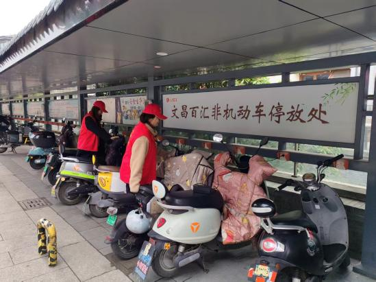 志愿者們身穿紅色馬甲,手持清理工具,細(xì)致打掃街區(qū)小區(qū)內(nèi)道路、清理枯枝落葉、撿拾綠化帶垃圾,將停放雜亂的電動車整齊地?cái)[放在停車區(qū)域,對于阻擋消防通道的電動車,志愿者們通過張貼溫馨提示等方式,引導(dǎo)商戶居民規(guī)范停車,關(guān)注消防安全。