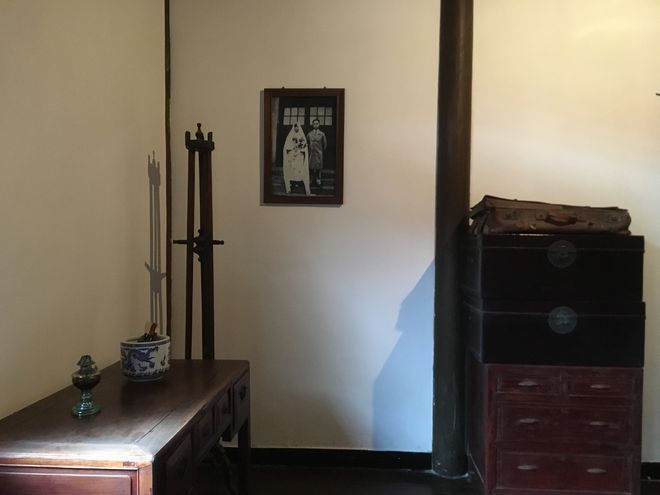 曹起溍故居遵循傳統(tǒng)揚州民居倒U形制,南向正廳寬敞明亮,梁柱間高懸曹起溍親筆所書木聯(lián):“憑欄聽鳥語,隔院送花香”,筆力遒勁中透著文人的風骨。東廂房,曾是曹起溍雙親安享晚年的溫馨居所,承載著一家人的天倫之樂;西廂房的墻壁上,一張銀鹽照片定格了1928年那個春日午后的美好瞬間,照片中的青年曹起溍身著西服,風度翩翩,身旁新娘的白紗,圣潔如雪。這幀珍貴的影像,成為了革命者柔情與擔當?shù)挠篮阋娮C,讓我們看到了他在鐵血革命之外的溫情一面。故居陳列館內,一塊黃銅懷表靜靜地躺在展柜中,時間永遠定格在 1931年2月24日,那日是北固江畔最凜冽的寒冬,烈士遺筆“秋風颯颯秋雨絲,妖氣一掃而空之”,墨痕與北固山呼嘯的朔風共鳴,合奏出一曲蕩氣回腸的革命悲歌。
