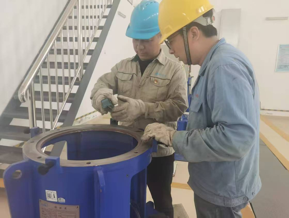 2025年4月初,湖西水廠碳濾池2號提升泵突發(fā)劇烈振動故障。朱俊率領(lǐng)應(yīng)急搶修組立刻馳援,驅(qū)車百余公里抵達(dá)現(xiàn)場后,運(yùn)用水平儀開展全面動態(tài)檢測分析,結(jié)合多年技術(shù)經(jīng)驗(yàn)鎖定設(shè)備隱患點(diǎn)。經(jīng)3天連續(xù)高強(qiáng)度作業(yè),成功實(shí)施基礎(chǔ)加固與動平衡校正,避免了一起重大停水事故,保障了片區(qū)內(nèi)居民用水安全。