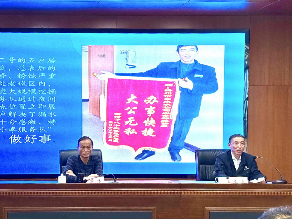 李青隊(duì)長(zhǎng)通過分享多年實(shí)際工作經(jīng)驗(yàn)和心得感悟,帶領(lǐng)大家學(xué)習(xí)勞模工匠精神,通過從“小李服務(wù)隊(duì)”的由來、“五力工作法”,寒冬臘月3萬支水表的更換等具體事例,講述了三十多年如一日為民辦實(shí)事,解難題的經(jīng)歷?,F(xiàn)在“用水有困難,小李幫你辦”不僅是揚(yáng)州老百姓掛在嘴邊的一句話,更是一份信任、責(zé)任和榮譽(yù)。