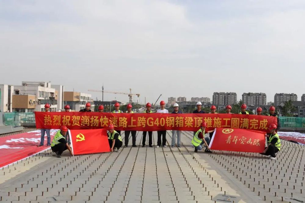 5月20日上午,潤揚南路快速化改造工程(開發(fā)路—華揚西路段)上跨G40滬陜高速公路鋼箱梁頂推工作圓滿完成落梁,標志著本工程取得階段性成果。