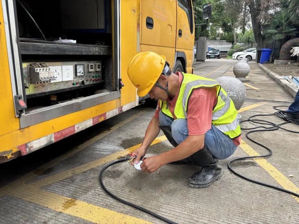 隨著監(jiān)控人員發(fā)現(xiàn)險(xiǎn)情并報(bào)告指揮組,演練正式啟動(dòng)。應(yīng)急指揮組迅速啟動(dòng)防汛預(yù)案,各小組按分工火速行動(dòng):物資保障組第一時(shí)間將沙袋、排水泵等物資運(yùn)送至現(xiàn)場(chǎng),在配電房周邊構(gòu)筑防水圍堰,防止積水倒灌;技術(shù)搶修組穿戴絕緣裝備,熟練操作多功能搶修車連接應(yīng)急電源,啟動(dòng)大功率排水泵實(shí)施快速抽排,全力保障配電設(shè)備安全;水質(zhì)監(jiān)測(cè)組同步開(kāi)展水質(zhì)檢測(cè),確保供水水質(zhì)達(dá)標(biāo)。