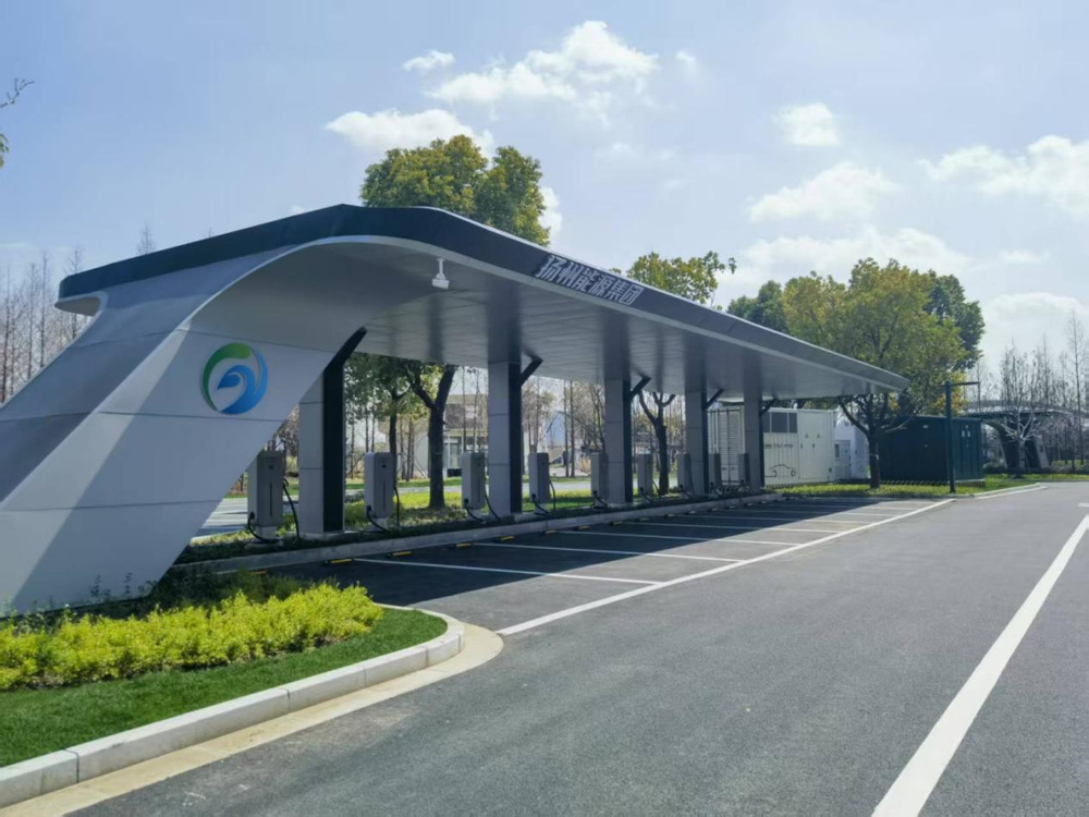 該綜合能源站位于“運(yùn)河十里”停車場,緊鄰揚(yáng)州東區(qū)SM廣場,共配置光伏系統(tǒng)30.48KWp、618KWh一體式儲能柜1套和快充樁22個、超充樁2個,其中,2個超充樁具備最大功率600KW充電能力,一輛家用新能源汽車最快可在10分鐘內(nèi)充電80%以上,有效提升用戶充電體驗(yàn)。