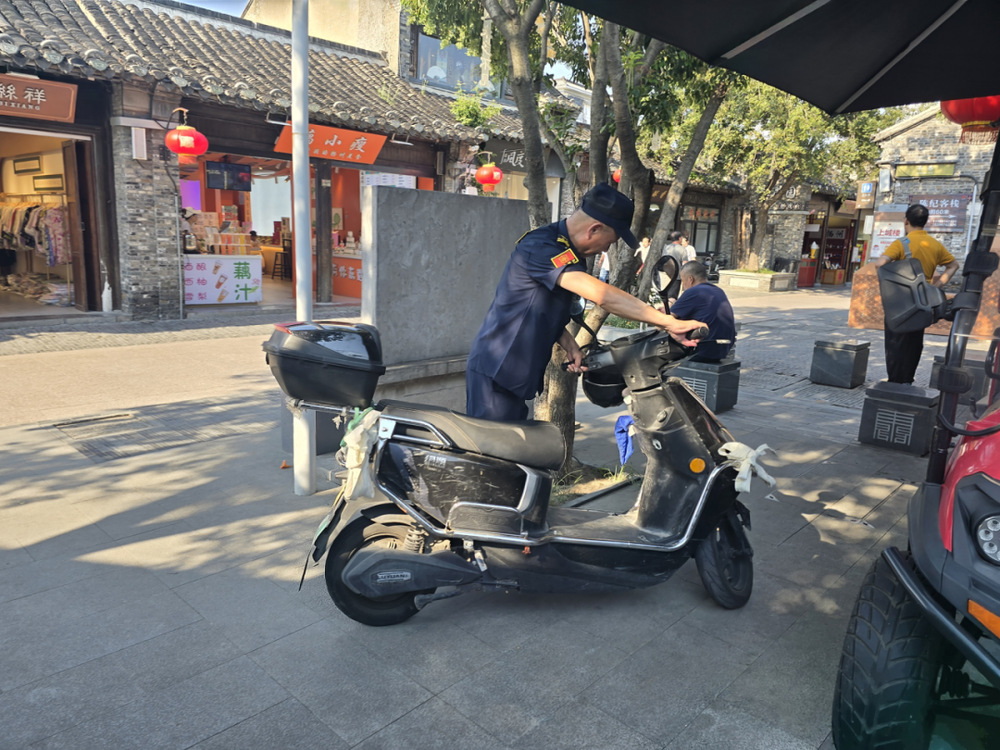 傍晚7點(diǎn),人流達(dá)到峰值。老劉站在電瓶車禁行區(qū)前,汗水順著脖頸滑進(jìn)衣領(lǐng)。師傅,通融下?孩子等著吃飯呢!游客舉著手機(jī)直播,鏡頭對準(zhǔn)老劉。他接過電瓶車,推到200米外的電動車停放點(diǎn):您看,這石板路是文物,電瓶車壓出裂縫就難修了。直播畫面里,彈幕突然刷起保安大叔好耐心支持文物保護(hù),老劉憨厚地擺擺手,繼續(xù)引導(dǎo)下一輛。