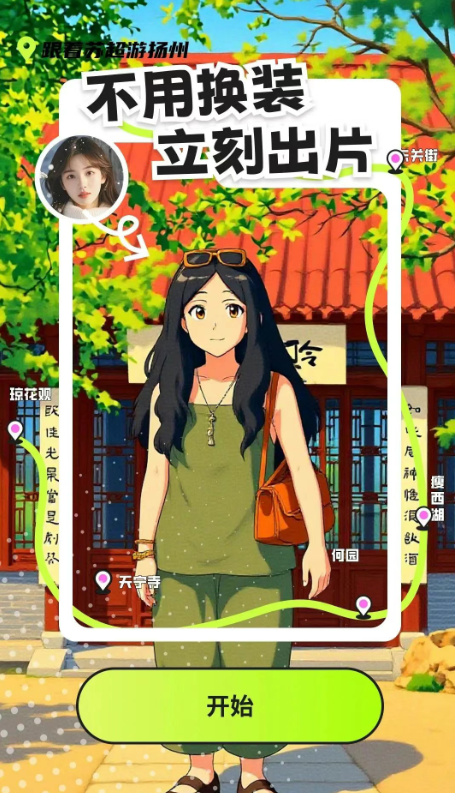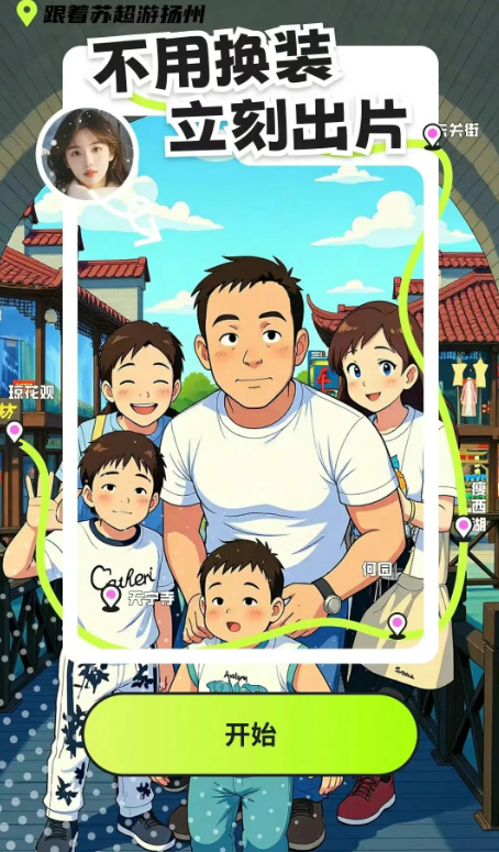 AI旅拍核心依托先進的AIGC算法。其強大的面部識別與重建技術(shù),精準(zhǔn)捕捉游客五官特征;智能光影膚色匹配技術(shù)則實現(xiàn)影像與揚州文化元素的無痕自然融合。支持單人和多人寫真、卡通濾鏡風(fēng)格,多人合拍時智能協(xié)調(diào)不同人物的風(fēng)格融合,確保群體照既風(fēng)格統(tǒng)一又個性鮮明。最終生成的每一張照片,都是藝術(shù)感與真實感兼具的“穿越”瞬間,成為游客獨一無二的揚州珍藏記憶。