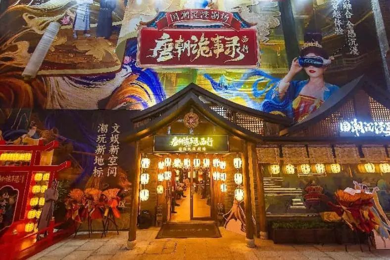 《唐朝詭事錄·西行》國潮沉浸劇場開業(yè)后不僅迅速引發(fā)市場熱潮,提高了所在街區(qū)——大水灣街區(qū)的曝光度;更是主動承擔(dān)社會責(zé)任,聯(lián)動周邊場館,打造研學(xué)路線,開展“兒童關(guān)愛”研學(xué)活動,踐行文化傳播與教育責(zé)任。