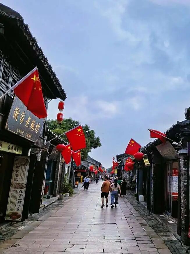 氛圍營造工程以紅動(dòng)?xùn)|關(guān)為主題,在沿街路燈桿、商鋪門前有序懸掛鮮艷五星紅旗。一面面紅旗與古街的歷史肌理交織,形成紅映古街、家國情長的喜慶畫卷,讓家國情懷浸潤每處角落。
