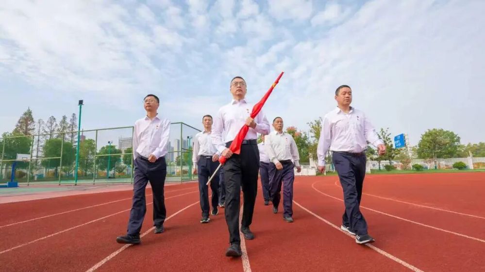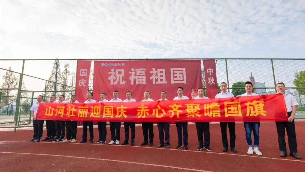 “山河壯麗迎國慶,赤心齊聚瞻國旗?!滨r紅的標(biāo)語在晨光中格外醒目,道出了全場人員的心聲。仰望國旗,大家思緒萬千,仿佛看到了祖國七十六載波瀾壯闊的發(fā)展歷程,感受到了民族復(fù)興的強勁脈搏。