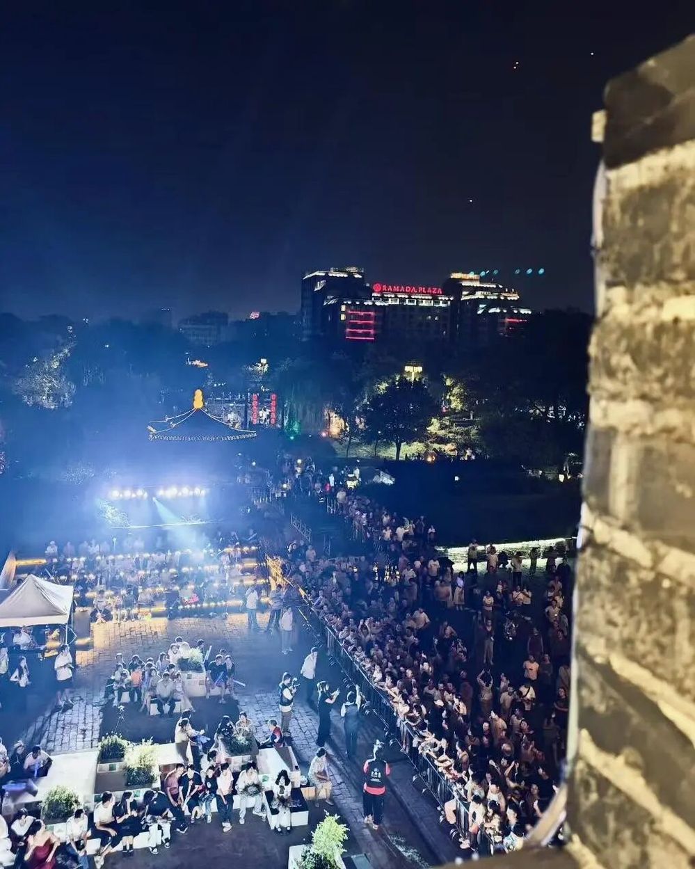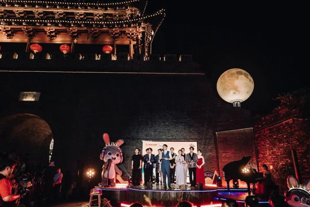 傍晚六點半,音樂會在主持人熱情洋溢的開場中拉開帷幕。在介紹完活動 “文旅賦能、文化碰撞、空間創(chuàng)新”的核心理念與到場嘉賓后,“紙鳶叩月?啟幕盛典” 儀式成為全場首個高潮——嘉賓們共同執(zhí)起 “時光之鑰”,叩響象征古今交融的 “時光月門”。伴隨主題旋律奏響,系著熒光絲帶的大紙鳶從東關(guān)城樓緩緩升空,嫦娥舞者輕盈起舞,冷焰火瀑布傾瀉而下,光影與音樂交織,瞬間將千年甕城化作連接歷史與當下的 “音樂劇場”,正式宣告 “樂下東關(guān)” 微 Live 時光音樂會啟航。
