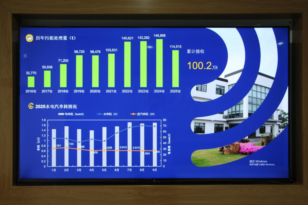 在工藝管控與環(huán)保達標層面,企業(yè)搭建全流程智能監(jiān)測體系:污泥進場時,通過自動采樣設備檢測金屬、有機物含量,杜絕不合格污泥入場;干化過程中,中控系統(tǒng)實時監(jiān)控溫度、濕度、蒸汽壓力等十余項關鍵參數,偏差超限時自動報警調整,通過精細化管理,企業(yè)當前蒸汽單耗較設計值下降32%,用電單耗較設計值下降15%,均處于行業(yè)領先水平;尾水、廢氣排放均遠低于國家排放標準,十年來污染物排放合格率始終保持100%,真正實現“安全處置、環(huán)保達標、資源循環(huán)”的技術閉環(huán)。