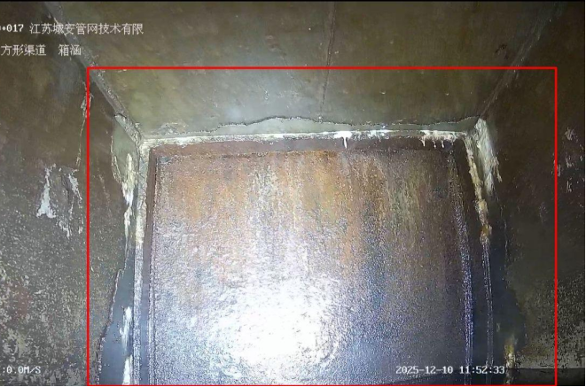 面對箱涵內(nèi)淤泥沉積、水體渾濁、空間狹窄等復雜工況,傳統(tǒng)檢測方案需提前進行現(xiàn)場預處理,不僅耗時久、成本高,檢測精度也難以保證。為此,城安公司采用機器人探測方案,以科技手段突破檢測瓶頸。